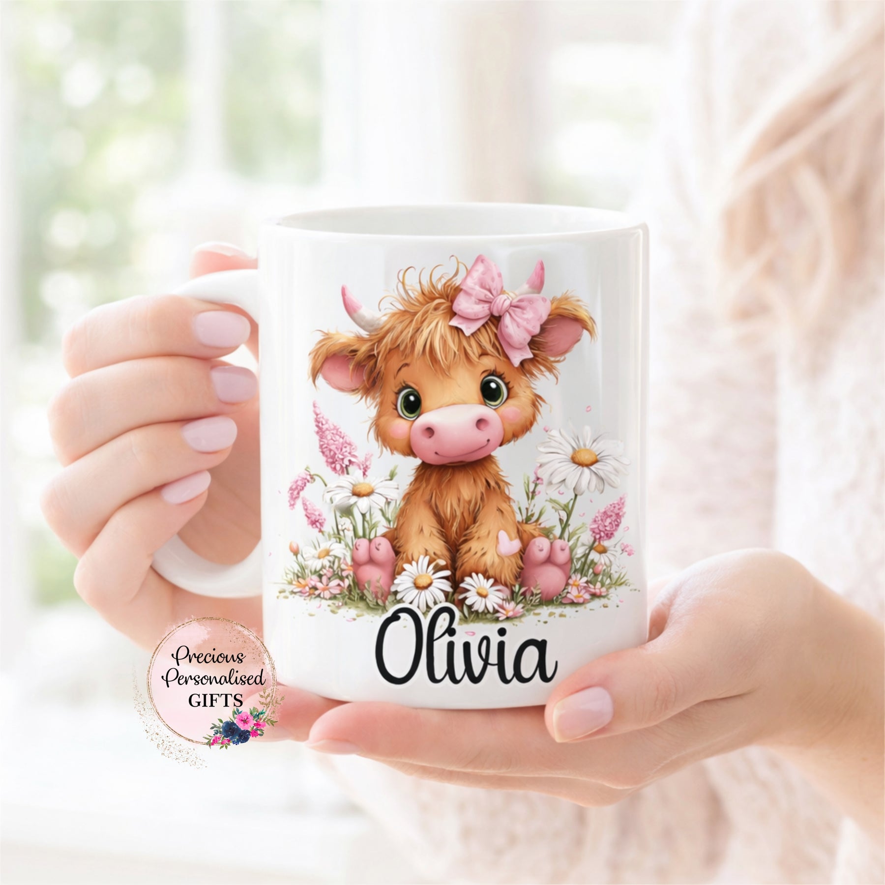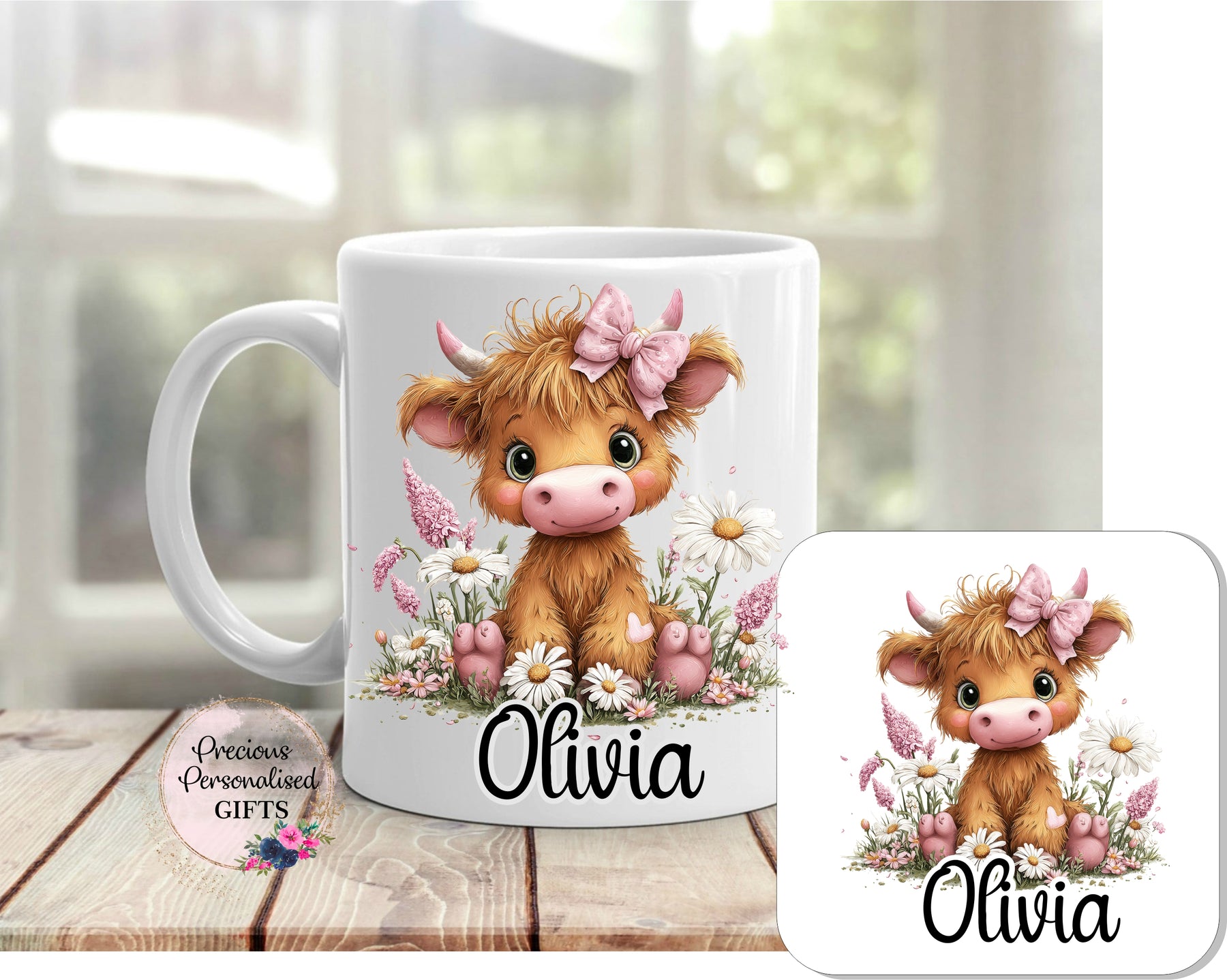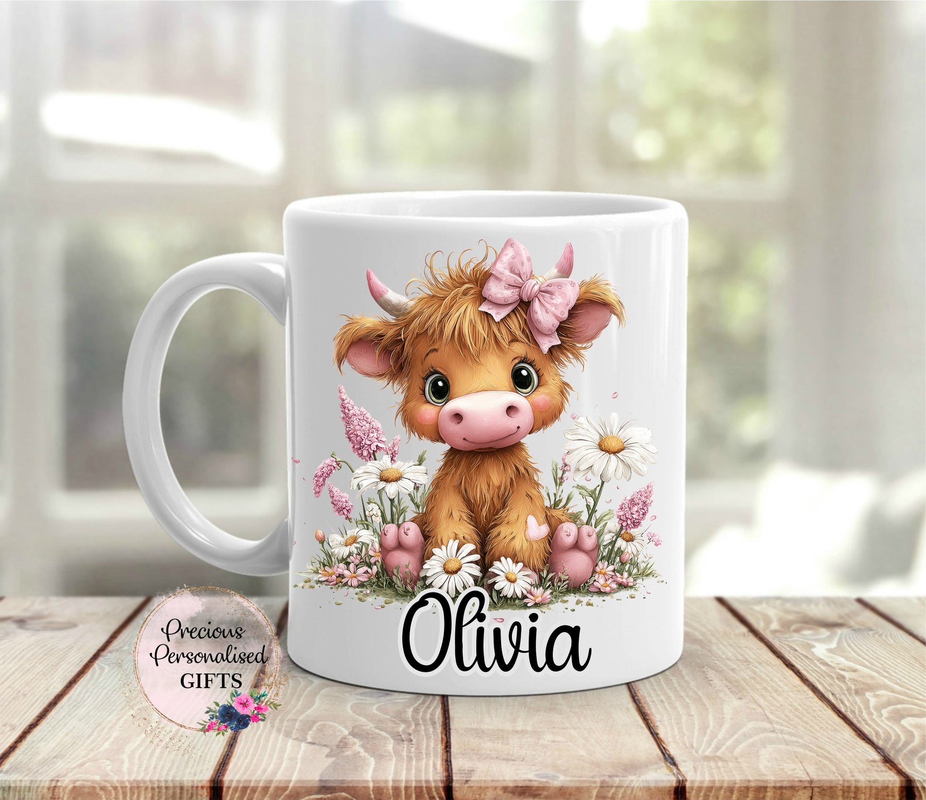 Introducing the perfect gift for any highland cow lover! This charming mug showcases an adorable girl highland cow design that's guaranteed to brighten someone's day. Add a personal touch by customising it with any name—making it a truly unique present.