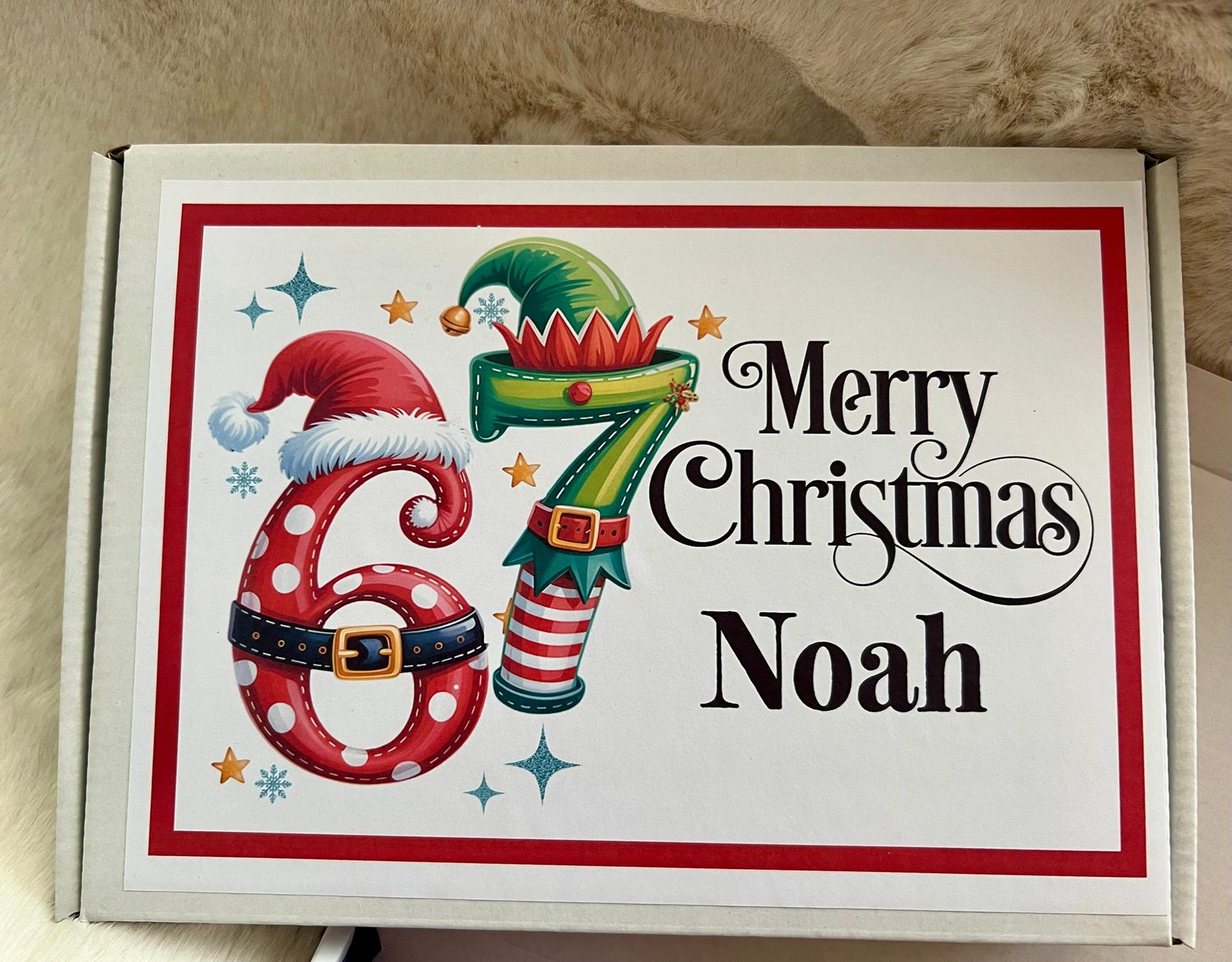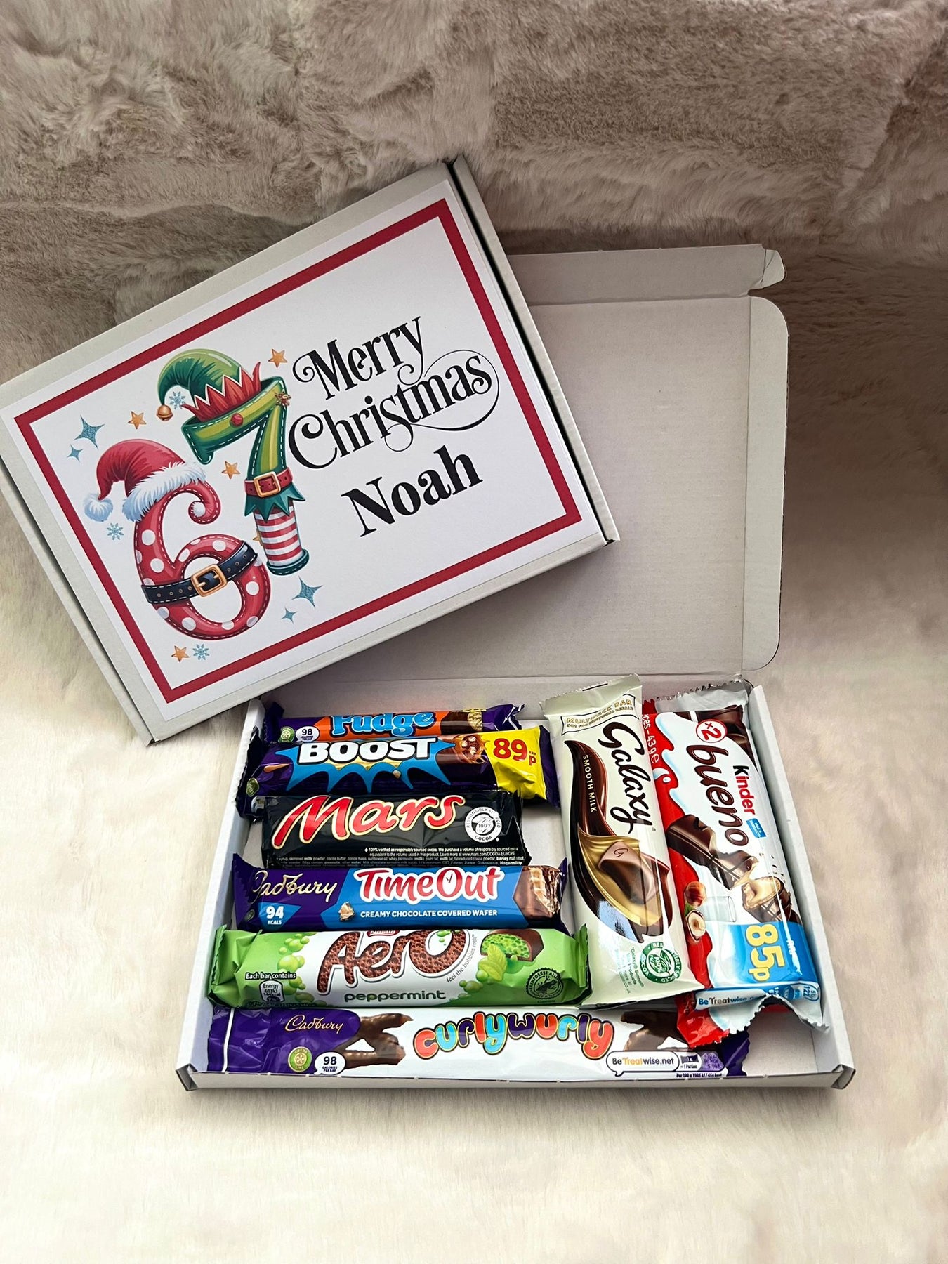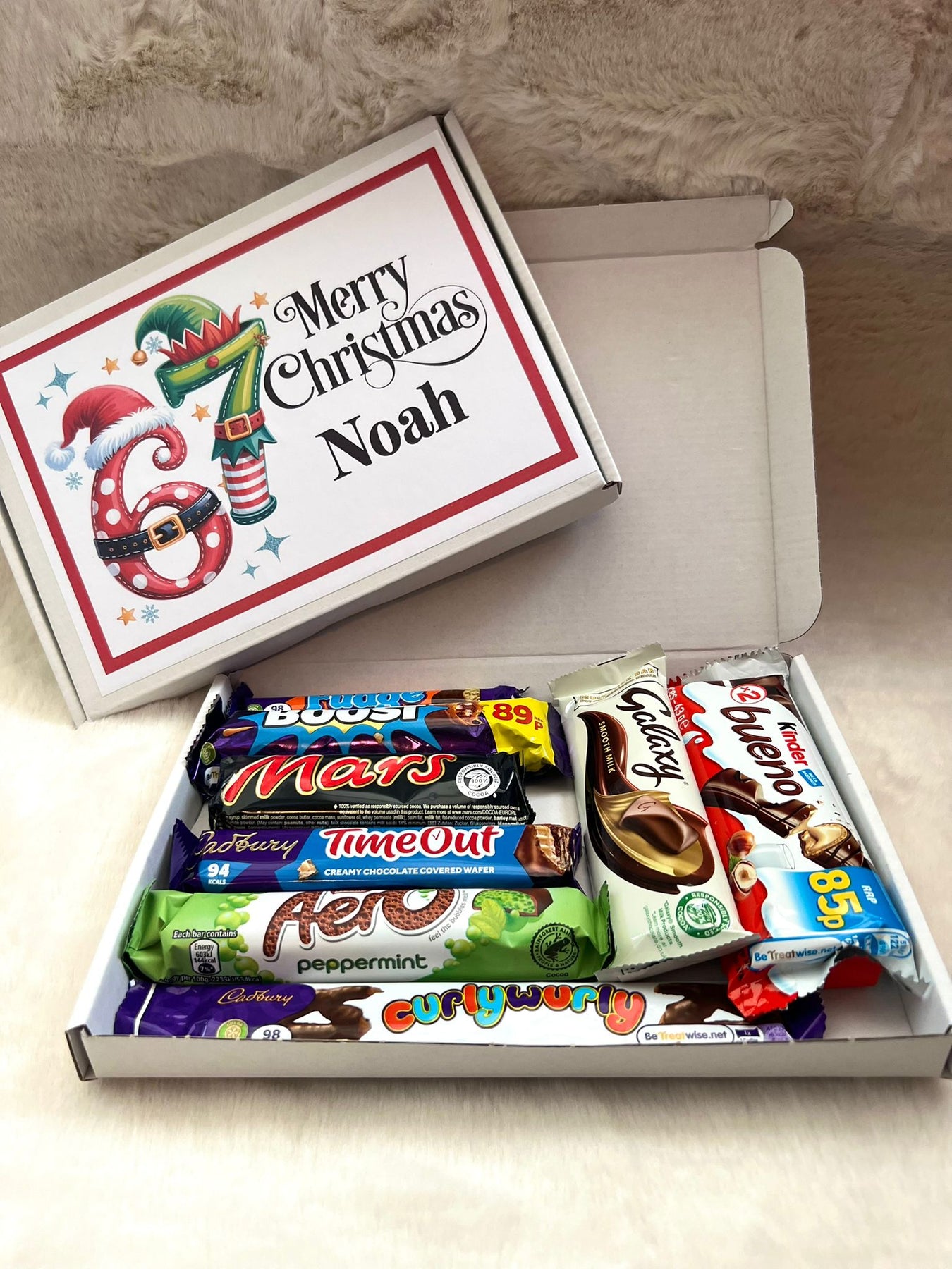 Join the viral 6/7 Christmas craze with our bestselling personalised chocolate gift box! Perfect for children, teens and chocolate lovers of all ages, each box is customised with their name and age number for a magical festive surprise.